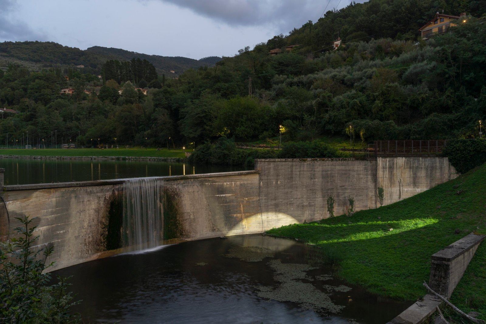 Attraverso un faro LED collegato all’illuminazione del lungo lago, la diga viene temporaneamente illuminata: Coals si limita a mettere in risalto quanto già esiste, illuminando la diga in quanto soglia e il protendersi della sua ombra nelle acque del Rincine. Con un delicato intervento formale ma non ontologico, l’artista si sottrae facendo emergere la relazione autentica che lega gli abitanti di Londa al proprio lago e alla sua diga.